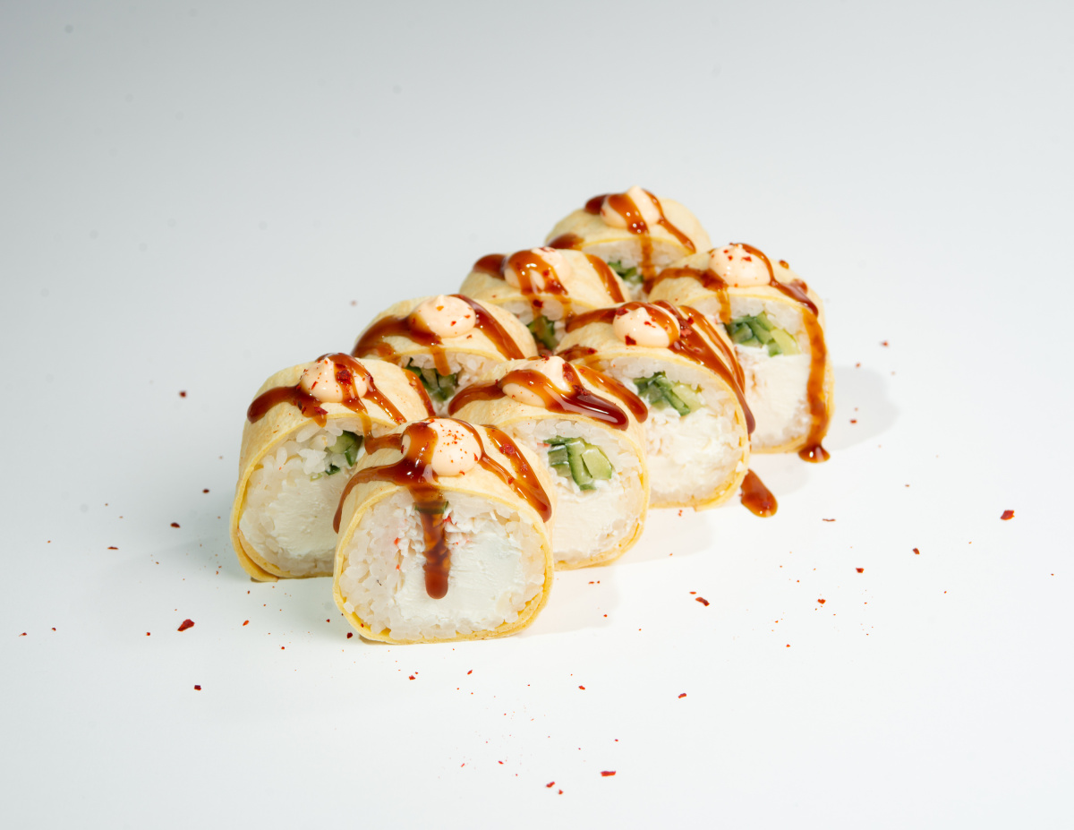 - 33.Большой тамаго с крабом, сыром и огурцом (8 шт)