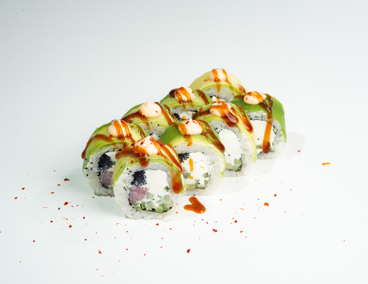 39.В авокадо с тунцом и чёрной икрой тобико(8шт)