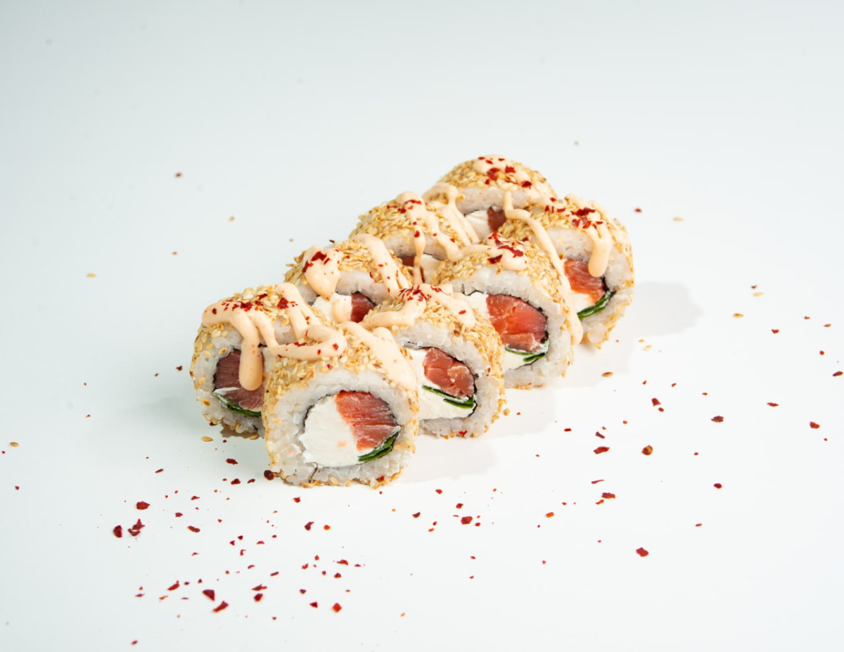 - 4.В кунжуте с копчёным лососем (8 шт)