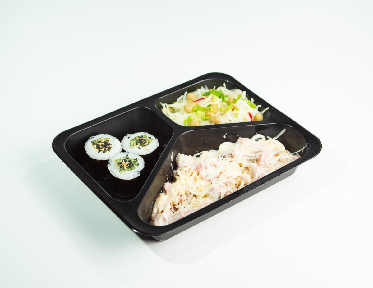 - Ланч Бокс №3 Салат, карбонара, малый ролл с огурцом