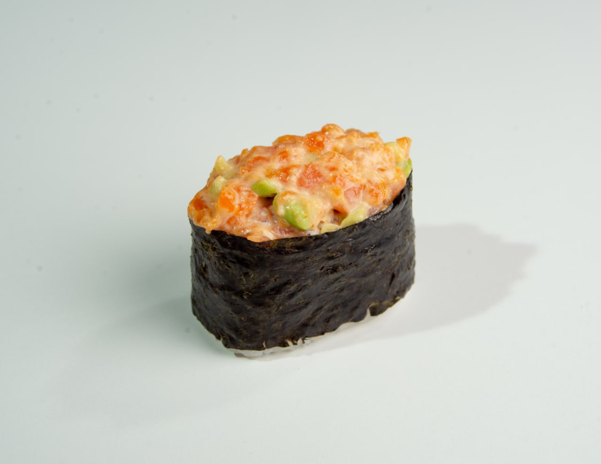 8.Гункан замес лосось, авокадо, спайси