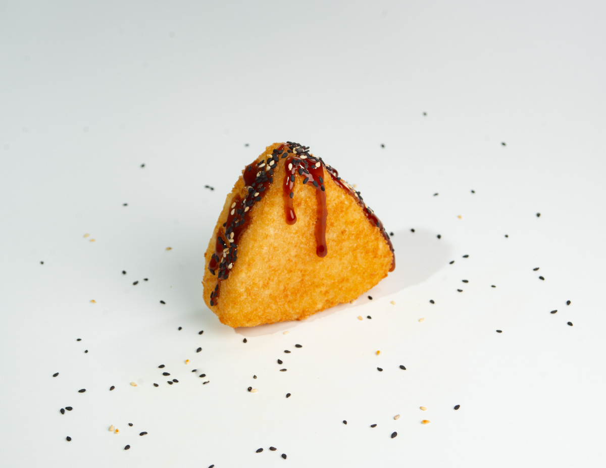 - Жареный онигири с лососем (1 шт)