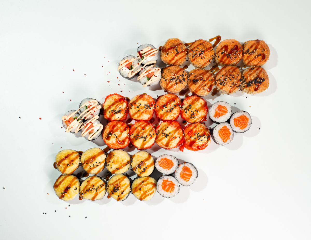 Малый ролл с копчёным лососем, зелёным луком и сыром (6шт)
