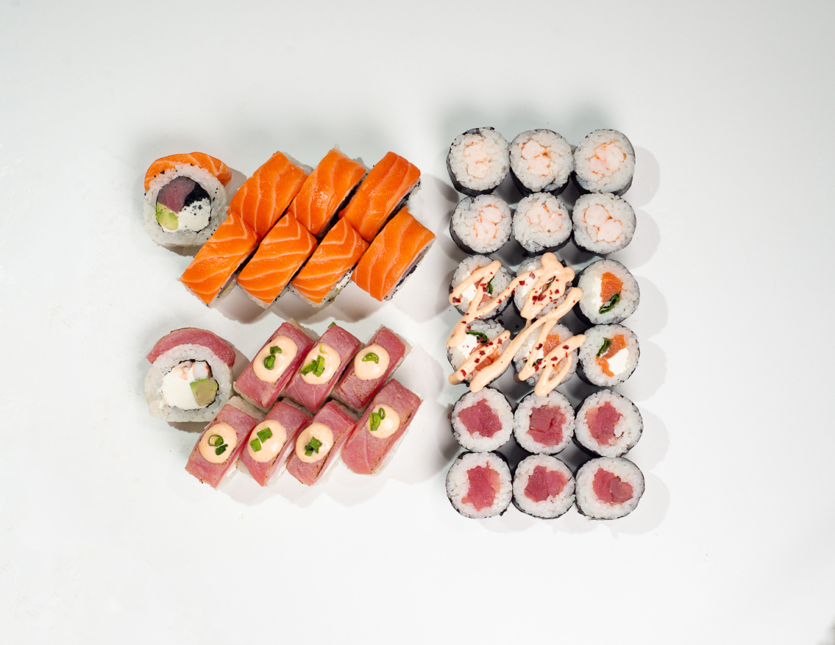 Малый ролл: х/к лосось, зелёный лук,сыр,спайси, посыпка чили (6шт)