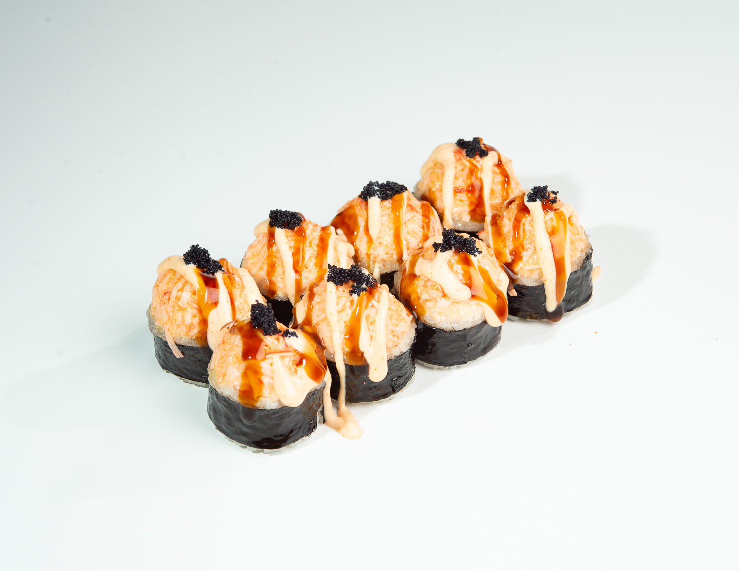 19.(16шт)Запечённый с крабом и чёрной икрой тобико